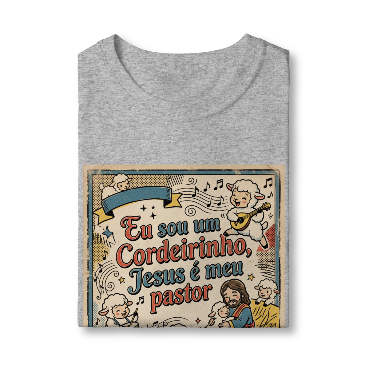 A Camiseta Infantil “Eu Sou um Cordeirinho” é delicada, fofa e cheia de significado. Com uma estampa encantadora e cores suaves, ela transmite a pureza, o cuidado e o amor de quem cresce aprendendo que Jesus é o Bom Pastor.